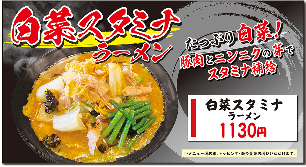 「白菜スタミナラーメン(並盛)」/1130円(税込)
