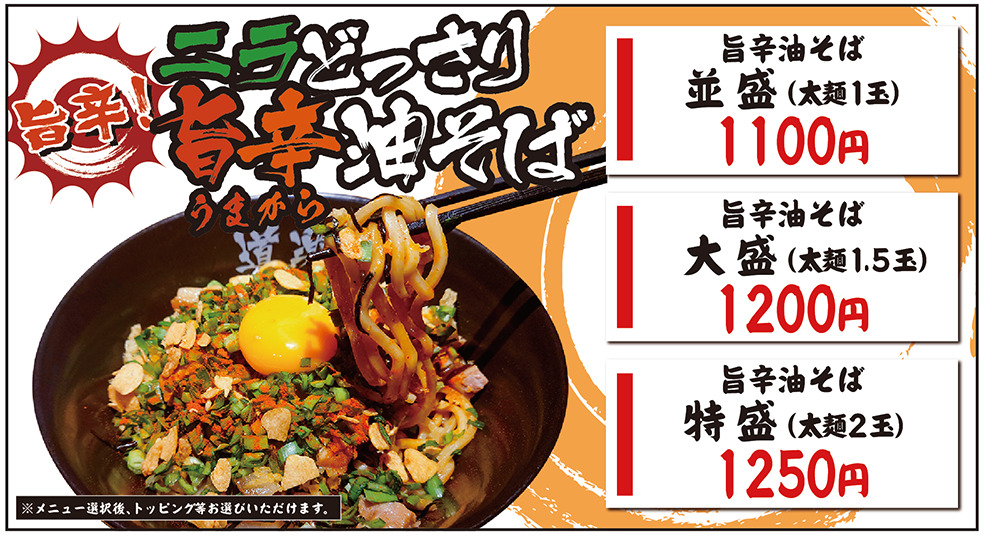 「ニラどっさり旨辛油そば(並盛)」/1100円(税込)